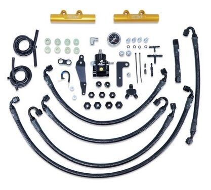 PTFE製のラインキットは、取り付けが簡単で、切断やホースの組み立ては一切不要です。各ラインキットは、E85を含む最新のエタノール燃料に対応しています。これらのキットにはIAGフューエルレールとAeromotiveアジャスタブルフューエルレギュレーターが含まれており、燃圧を正確にコントロールすることができます。タンブルジェネレーターバルブやその他部位の改造は必要ありません。